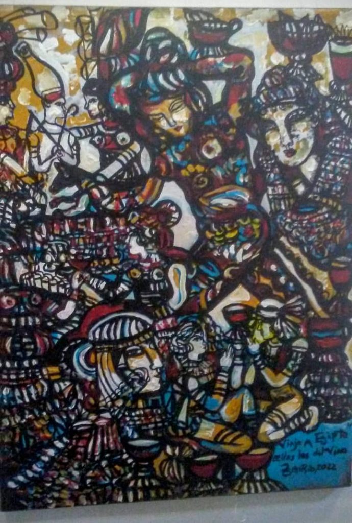 Esta muestra de Zaida del Río, que estará brevemente en Cuba y luego partirá hacia Argentina, es un resultado de los muchos meses de creación post pandemia, en los cuales la artista resurgió. Luego del encierro, lo primero que llega es el deseo de vivir, de irnos de copas, de excedernos y de llegar hasta el desmadre. Esas proporciones inmensas del placer están ahí enfocadas desde el buen gusto. En la exposición hay, además, una alusión a la belleza del cuerpo de la mujer, con resonancias de erotismo y misterio. El territorio femenino es explorado desde la embriaguez y allí también hay que detenerse para analizar cómo las mujeres pintadas por Zaida resignifican la historia y la vuelven a contar desde un paradigma más cercano al universo personal de la autora. El parecido entre los rostros de estos personajes y el de la propia Zaida apunta hacia el uso de la figura del alter ego y de la participación de la subjetividad del ente creador en la hechura de un mundo a su imagen y semejanza. La pintora simplemente quiere expresar que su potencia mágica es tan fuerte que resulta abarcadora de toda complejidad humana.