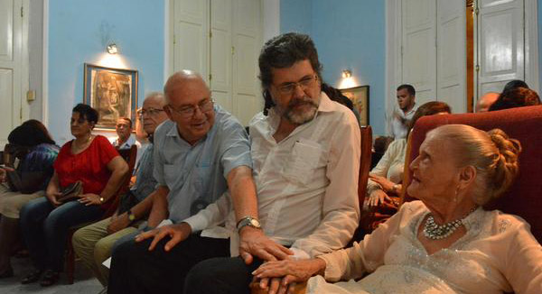 Del brazo de su esposo, Raidel Hernández, hace entrada a la sala donde se elogiará una vida de poesía y de amor. Viste enteramente de blanco y lleva el pelo cuidadosamente recogido. Detrás del sillón desde donde asistirá al homenaje, una foto de ella, toda de azul, algún tiempo antes. A su lado Abel Prieto, Miguel Barnet, Antón Arrufat. A sus espaldas, escritores, amigos, familiares, lectores.