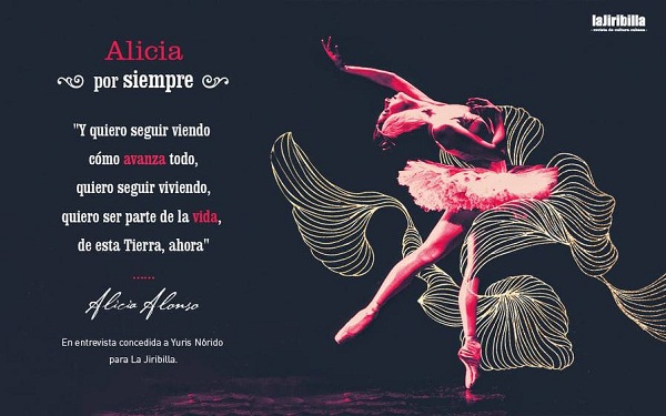 Nuestra Alicia Alonso, quien por casi nueve décadas de vida profesional como bailarina, coreógrafa y pedagoga contribuyó con su arte genial a poner el prestigio de su Patria en el más alto sitial en las cuatro esquinas del mundo, arriba este año al centenario de su natalicio.