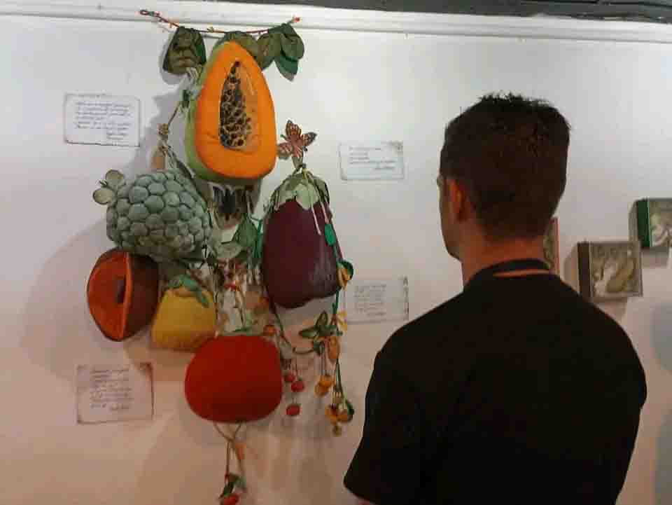 Sabores, por su parte, es una serie de obras tridimensionales: esculturas blandas en las que Lesbia recrea una naturaleza tropical de frutas y vegetales a partir del trabajo con la tela, el bordado, la costura, el tejido y los accesorios con la habilidad heredada de sus mayores (y en décadas como investigadora, promotora y curadora de la tradición latinoamericana). Ahora en cajas de acrílico de pequeño formato disfruta los detalles, inserta insectos, otros animales, y graba el cristal que sirve de fondo e interviene marcos, como si la curiosidad motivara cada pieza, como si no quisiera dejar nada sin alterar, sin tocar por la mano y la mirada.