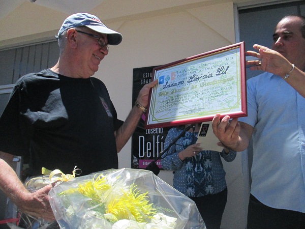Por “su complicidad, su obra y su apuesta incansable por los más auténticos valores de nuestra cultura” se le entregó a Lázaro García la Medalla de la Ciudad de Cienfuegos, en nombre de Artex, Bis Music, el Estudio Eusebio Delfín y la música cubana. Nelson Valdés, joven trovador cienfueguero, cuya carrera creció en dicho sitio, le hizo un merecido reconocimiento. Valdés estrenó el tema Querido Viejo, como muestra del respeto y cariño hacia este insigne trovador, hijo ilustre de la ciudad y compositor de algunas de los más entrañables títulos de la música tradicional autóctona. Dicho tema representa el primero en grabarse, mezclarse y masterizarse en los renovados estudios Eusebio Delfín.