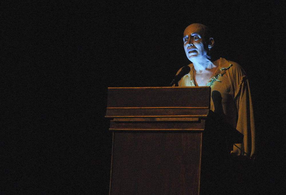 Interesa al actor-director-dramaturgo presentar lo acontecido, mostrar el retorcido curso de la historia. Las ansias de poder corrompen y, catalizadas por instigadores y secuaces con aspiraciones, son capaces de convertir a un hombre justo en ser inconsciente e irreflexivo y en asesino sanguinario. Me interesa, en particular, el combate entre el actor y el personaje, si el intérprete perdiera el juicio y sucumbiera, como Macbeth, a dulces halagos o chantajes siniestros; si abandonado al “gran teatro del mundo” olvidara la narración de los hechos y claudicara ante el frenesí que arrastra a su máscara, la pieza quedaría hecha pedazos, la fábula sería incomprensible y el caos se apoderaría del sentido. Domar el ego del actor y disponerse al juego de teatro con humildad y gozo, parece ser la fórmula de este creador. Hay mucho que aprender de sus procedimientos y de lo que significan para él, la profesión y el arte.