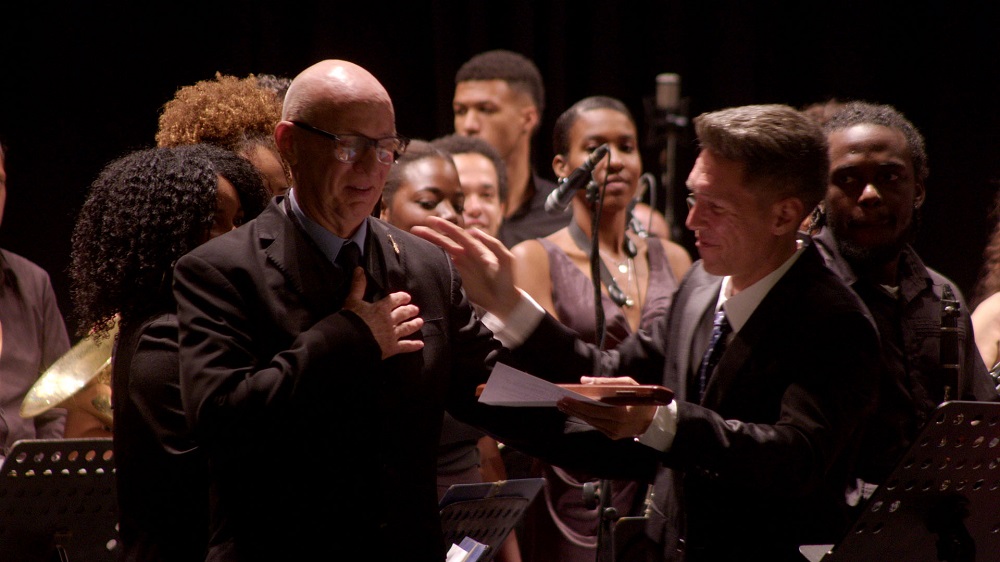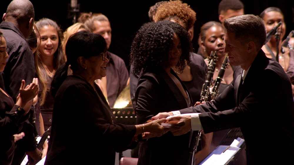 Precisamente una réplica de la batuta del director fundador de la Banda constituye el reconocimiento mayor que la formación puede conceder. Antes del concierto, fueron entregadas tres: al Teatro Martí, recibido por su director Marcos Rodríguez; a la Maestra Digna Guerra, directora del Coro Nacional de Cuba y al connotado multiinstrumentista, compositor y pedagogo Javier Zalba. Fue así que la tarde se presentó especial, aunque ya el programa lo auguraba.