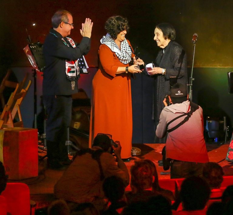 En la gala de inauguración Carole Rosenberg, fundadora del Havana Film Festival y destacada promotora de la cultura cubana recibió de manos de Tania Delgado el Coral de Honor de esta 45 edición.