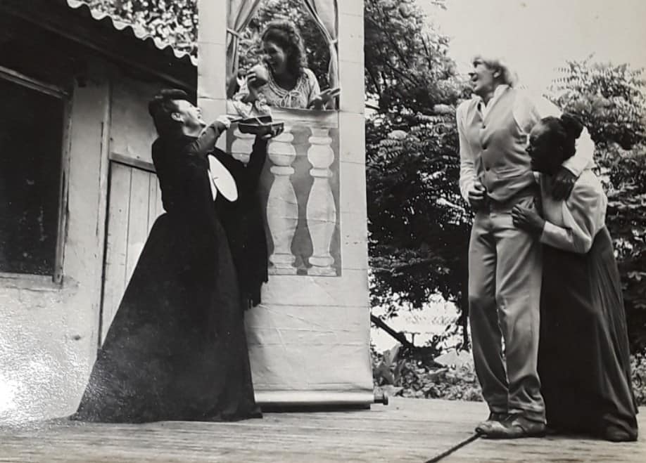 Obra: El amor de Don Perlimplín con Belisa en su jardín, de Federico García Lorca / Dirección artística: Fernando Quiñones/ Escenografía y vestuario: Guillermo Mediavilla / Música: Edesio Alejandro /Año: 1984/ Sala: El Sótano / En las fotos aparecen los actores Magdalena Sorás, Roberto Cabrera, Marta García y América Cruz.