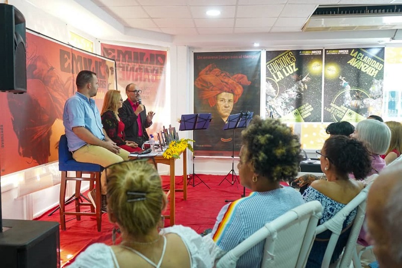 “No puedo citar a un grande si no puedo ni siquiera asomarme a un diálogo con él”, aseguró en el documental Cosme, un enorme juego con el tiempo, dirigido por Alejandra y al cual no podríamos separar del libro, pues resultó la génesis del proyecto editorial: si el documental fue un homenaje al amigo-artista que, en su Holguín natal, se sabía querido y admirado; el libro, al complementarlo, lo es también. Como dije entonces en las palabras de presentación, Cosme, un enorme juego con el tiempo es un autorretrato de Cosme, quien supo que además de su obra, que ha influido a varias generaciones, este documental sería como esa carta al mundo que lanzó la poeta Emily Dickinson: una carta-testimonio que permite acercarnos, curiosos y motivados también por la admiración, a momentos vitales de su vida: a la génesis y los caminos de un maestro. Por eso este es, sobre todo, un libro necesario y sincero, como sincera es la mirada de Cosme Proenza. Él mismo aseguró que “se es personal en la medida que se es sincero consigo mismo”, como aquel Martí de Jorge Arche que, con la mano en el pecho, le cautivó en su infancia. Este libro publicado por Ediciones La Luz, con edición de Luis Yuseff, corrección de Mariela Varona y diseño de cubierta e interiores de Robert Ráez, es otra carta lanzada al mundo. Aquí también Alejandra nos entrega otro autorretrato de Cosme pintado por Cosme, y por ella, junto con el equipo editorial de La Luz; luego de varios años de profusa investigación y trabajo, y con la humildad del orfebre, o del copista e iluminador que en el claustro medieval, a la luz de la vela, dejaba que la pluma creara maravillas insospechadas, misterios por imaginar. A todo ello —como amplios pórticos de luz que custodian la entrada a mundos que apenas vislumbrábamos, incluso quienes nos habíamos detenido un poco más en su quehacer— nos acerca un libro que, en su valor testimonial, resguarda la memoria de uno de nuestros grandes artífices, y que nos hace agradecer la dicha de haber vivido similar tiempo bajo el sol en la misma ciudad; incluso que podamos decir a nuestros hijos y nietos, con orgullo, que fuimos contemporáneos de Cosme Proenza.