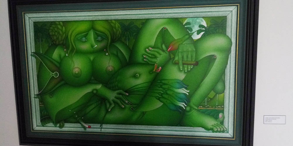 En el Salón confluyen interesantes obras como Elegía, del joven Roger David Remón Fuentes; Tres hermanos, de Wellis Peña; Diloggún con Iré, de Aníbal de la Torre Cruz; Caprichos de un sastre, de Iosvani García Pérez; Historias del mar I, II y III, de Xiomara Sera Domínguez; y los abstractos de la serie Sobre cómo las palabras construyen imágenes, de Cristhian Escalona Herrera; varias entre mis preferidas. Me alegró encontrarme con las tres piezas de Paisaje interior, de Dayamí Pupo, que recién expuso en el Centro de Arte su muestra Energía vital, y además, con la obra de dos artistas invitados: Isabel Cosano Alen y su Diosa ornamentada (varias piezas de esa serie) y El pescado de Rosita, de Jorge Luis Cudina.