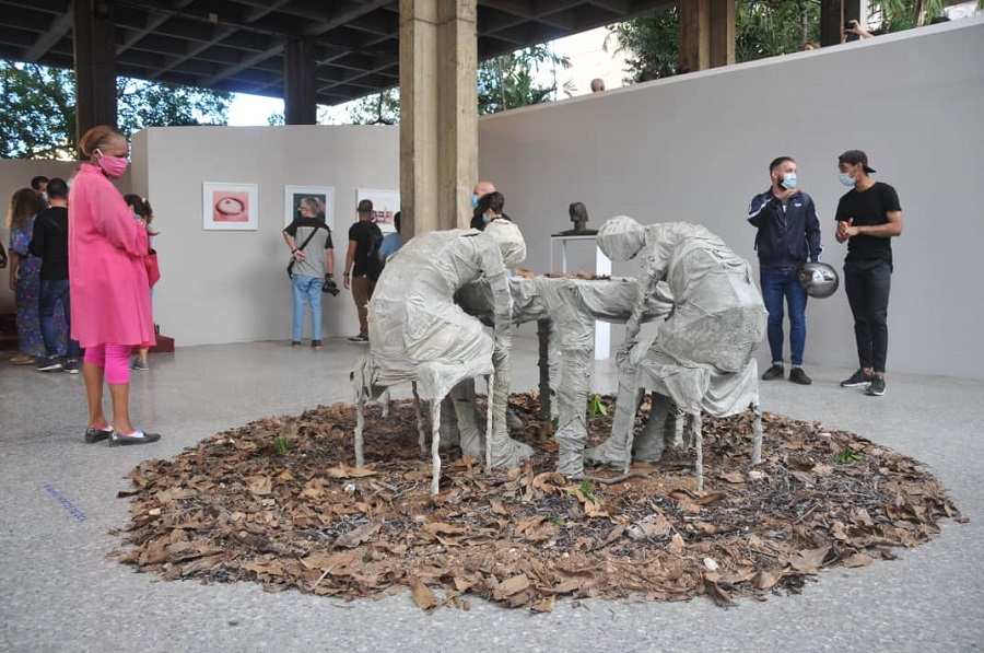 No obstante, y reconociendo el permanente riesgo de las omisiones, destaco la influencia del arte asiático en la obra efímera de la estudiante de tercer año de la Universidad de las Artes, Alexandra Carvajal; la manera en que Kelvin Sánchez nos alertó sobre los arriesgados tiempos en que vivimos. Rememoro con agrado la sencillez con que Denni Izquierdo situó en un punto de alerta el fenómeno inflacionario por el que actualmente atraviesa nuestra economía, cuando en una varilla metálica que pendía desde la pared colocó una presilla metálica, sobre la cual se sostenía un elevado monto de billetes de 1 CUP.