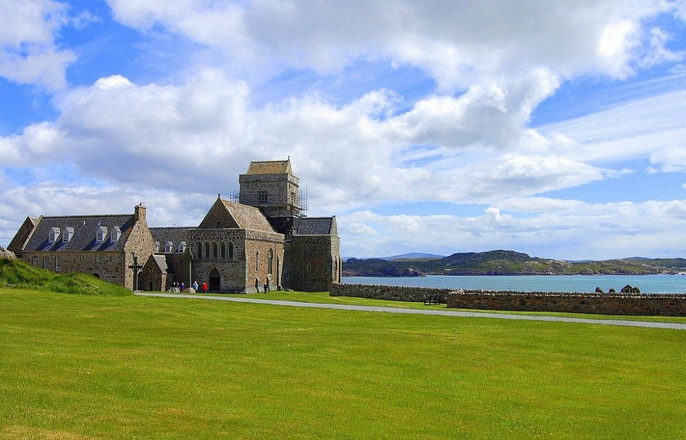 La erección de abadías medianas, y hasta pequeñas, igualmente contribuyó a enriquecer la arquitectura medieval desde sus inicios. La abadía de Iona, uno de los centros religiosos más antiguos y significativos de Europa Occidental, localizada en el archipiélago de las Hébridas —isla de Iona—, en Escocia, Reino Unido, fundada en 563 y saqueada por los vikingos al comenzar el siglo XIII, se convirtió en monasterio de benedictinos. Unos 48 reyes de Escocia, Irlanda, Noruega y Francia están enterrados allí, y entre los más famosos se encuentra Duncan I de Escocia, asesinado por Macbeth en 1040. Este tipo de construcción comenzó a proliferar por toda Europa.