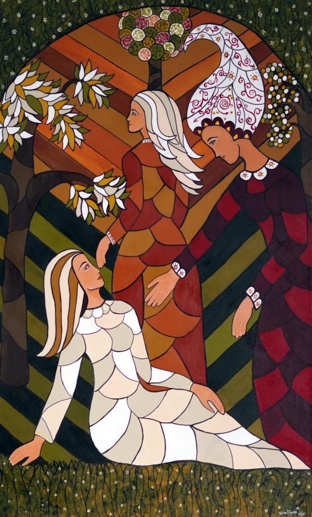 Como sucede con quien lleva mucho dentro de sí para decir, cada pieza de Silvia es un urgente testimonio de la satisfacción plena por recrear en el lienzo toda una imaginativa fantasía cargada de códigos propios, huellas que de alguna manera nos pueden remontar a la ingenuidad de la antigua pintura bizantina, pero que se refrendan desde una liberadora espiritualidad contemporánea.