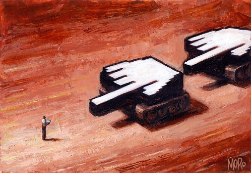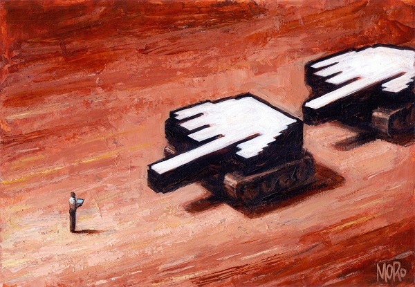 Sobre la base del neoimperialismo “Se producen guerras en 3D, esto es, por conquistar territorios, mercados y mentes. El acento en la esfera cultural obedece a un axioma neoimperialista: quien controla las mentes penetra los mercados y accede a los territorios”. Ilustración: Michel Moro