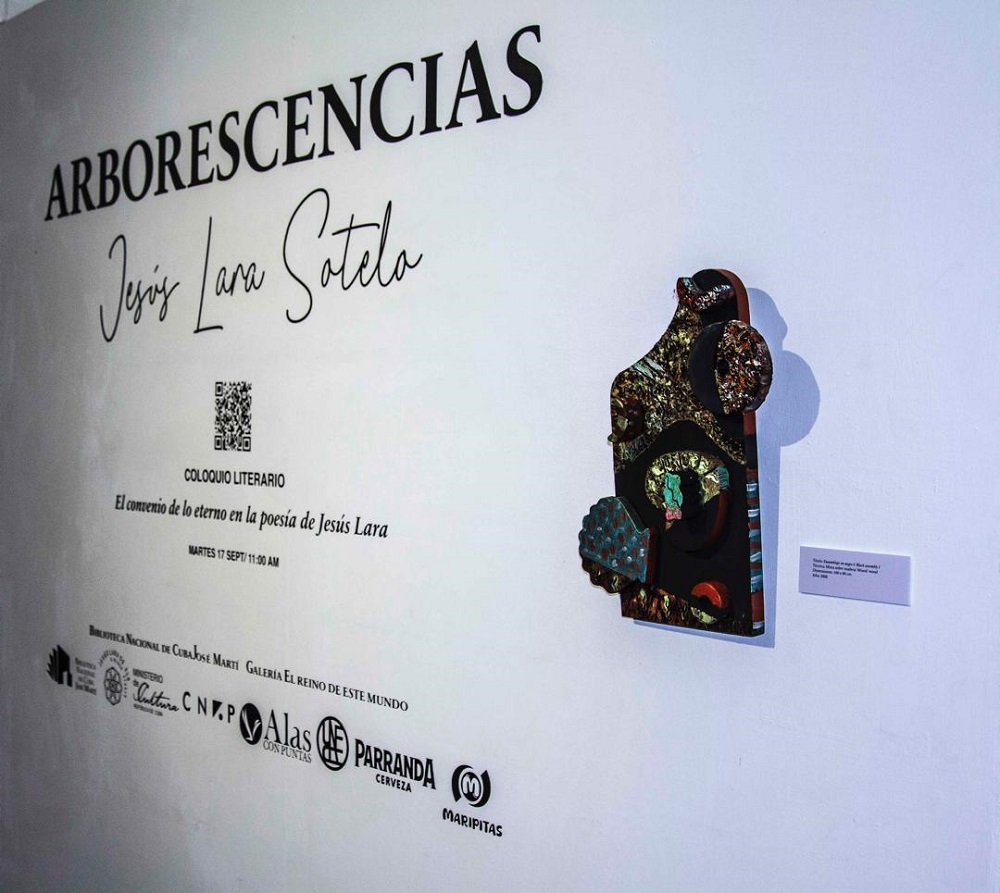 La muestra Arborescencias, del artista plástico y poeta Jesús Lara Sotelo, recién inaugurada en la galería El reino de este mundo, de la Biblioteca Nacional de Cuba José Martí, es una suerte de síntesis de su trayectoria artística en la visualidad. Lara rinde tributo a los treinta y cinco años de sus inicios como pintor (ocurrido en el ya distante 1989) y, al mismo tiempo, la muestra fue inaugurada el mismo día de su cumpleaños cincuenta y dos. Dos celebraciones en una.