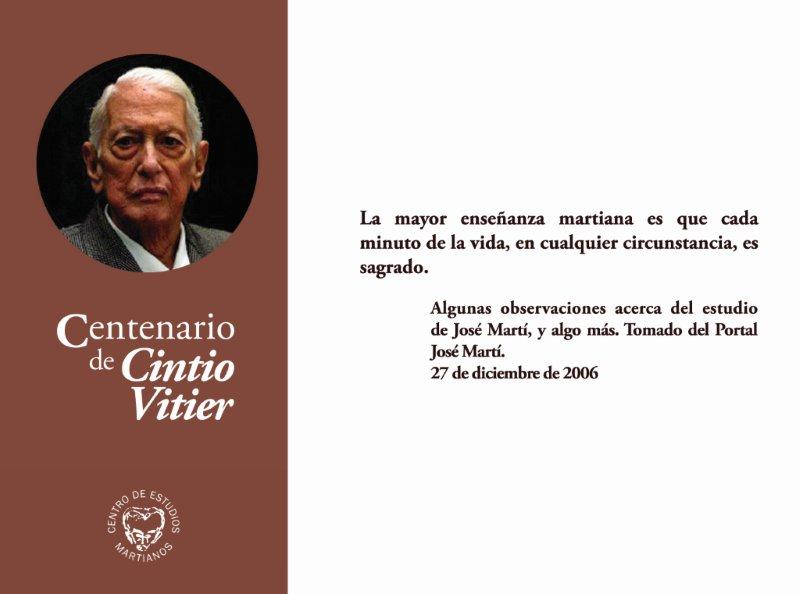Me dijo Roberto Fernández Retamar que Cintio había sido su maestro. “Maestro” —se entendía— en un sentido espiritual y no en el asociado al ejercicio del aula, de impronta a veces menos determinante. “Lecciones” nombró Vitier a aquellas conferencias dictadas en 1957 en el Lyceum, y cubanas, “Lecciones cubanas”, a esas otras, dadas mucho tiempo después en el Instituto Superior de Arte, que entonces le propuso recordar los 30 años de la salida de Lo cubano en la poesía. En ambos cursos, un denominador común, la iluminación del país, tanto desde sus líneas y avatares expresivos, como desde algunas de sus voces fundacionales, era la iluminación de un proceso —ser en devenir—, con fe absoluta en las potencias de la poesía y la cultura, frente al vacío, la estolidez y las operaciones de “desustanciación” que acaso hoy más que nunca nos asedian. Socavar, deslegitimar, hasta dejarnos sin raíz, parecen las divisas de un sector intelectual que desde luego se ha ensañado también con Vitier. No hablo de las críticas que su obra, como la de cualquier escritor o pensador, precisa, sino de las lecturas generales, de cierta forma afines y marcadamente políticas que insisten, por ejemplo, en la condición “inflacionaria” del canon cubano o enumeran, como supuestos “estigmas” de nuestra literatura: “La publicación de Cantos del Siboney, de José Fornaris”, “‘La estrella de Cuba’, primer poema ‘revolucionario’, escrito por Heredia”, “La agenda teleológica insular de Cynthio Vitier a partir de Lo cubano en la poesía” y “La publicación del panfleto Nuestra América, por José Martí, cúmulo de histeria verbal”.[1] Ya algo de esto habría advertido él en 1997, cuando en “Leyendo ‘La república escrita’ de Rafael Rojas” reaccionaba ante las consideraciones del ensayista, según el cual “la República de José Martí” se ajustaba al concepto de Agamben de “topografía de lo irreal” y la escritura martiana podía concebirse como “una suerte de holograma histórico”.[2] Con Martí en el centro de su ideario, Vitier creyó quizás románticamente que la palabra del Apóstol ayudaría a remediar la crisis y el éxodo de los noventa, pero a su vez señaló agudamente la responsabilidad de la Revolución con los jóvenes desmoralizados, escépticos políticos, marginales o antisociales, en los que tenía que verse “un innegable y doloroso fracaso”: