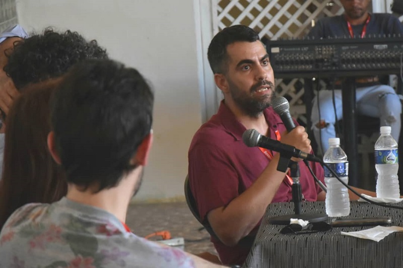 El conversatorio, moderado por el productor cinematográfico cubano Inti Herrera, tuvo como protagonistas a los cineastas Patricia Ramos y Alan González, de Cuba; a Federico Jacobi, de Argentina; y al chileno-canadiense Cristhian de la Cortina, con cuyo filme Sin papeles iniciaron las proyecciones en el cine Jibá de esta XVIII edición del Festival.