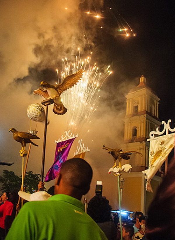 Cinco de la tarde del 24 de diciembre de 2018. Las personas se agolpan en las esquinas de la plaza Isabel II de Remedios (hoy parque Martí), escenario que atesora 200 años de diálogo cultural y competencia fraterna entre dos barrios: San Salvador y El Carmen. Unos marchan con el logotipo de un gallo; otros levantan una globa (símbolo del Carmen) o un gavilán. Todos visten de rojo o de carmelita. Ese día, visitantes de Cuba y del mundo llegan a la ciudad y toman partido por uno u otro contendiente.