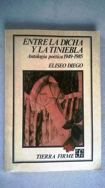 Ese día fue Juan Felipe Robledo, mi amigo, a visitarme a la librería. Conversando de tantas cosas como siempre le hablé de Eliseo Diego (a quien él, hasta donde recuerdo, no conocía) y le leí el poema “Y qué va a ser de tus recuerdos”. Se quedó de una pieza. Fulminado. Seguimos leyendo los otros poemas del libro (que para ese momento ya había dejado de ser intonso). Me preguntó si tenía otros libros de él a la venta. Le dije que no. Que era el único. Y era cierto. Hasta ese día solo había visto otro libro de Eliseo Diego: Entre la dicha y la tiniebla, antología poética publicada por el Fondo de Cultura Económica en 1986, seleccionada y presentada por Diego García Elío. Unos días antes la había conseguido, el 23 de abril. El libro aún me acompaña con el tiempo fijado en esa fecha de hace veintinueve años.