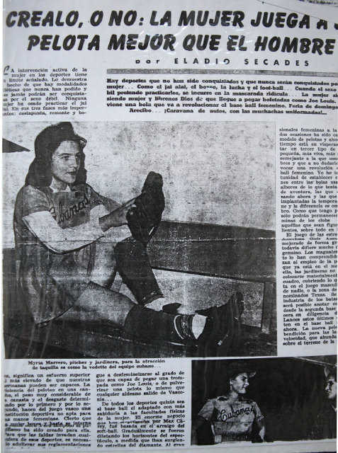 Muchos años más tarde fue constituida, el 19 de septiembre de 1947, la Organización Deportiva de Béisbol Femenino de la República de Cuba, al calor de la cual alcanzaron notoriedad deportiva y gran visibilidad en los medios de prensa los nombres de mujeres que practicaban beisbol, como son los casos de Isora del Castillo, Eulalia González (“Viyaya”), Mirta Marrero, Gloria Ruiz, Migdalia Pérez, Isabel Álvarez, Luisa Gallegos o Brígida Beiro. De Isora, oriunda de Regla e hija del pelotero amateur Argelio del Castillo, se recuerda su participación como tercera base en un equipo femenino de Chicago en los años de 1949 y 1950, donde se le conocía con el sobrenombre de “Pimienta” y además se estimaban mucho sus cualidades como vocalista. La superdotada “Viyaya”, por su parte, se hizo célebre jugando la primera base contra equipos de hombres; dueña de un inusual coraje y fortaleza física, no admitía que la trataran con inferioridad por su sexo en los diamantes, y le gustaba recordar anécdotas que ponían en entredicho la hombría de sus contrarios, como la de aquellos lanzadores que le pegaban la bola cuando ella les conectaba de hit. En cuanto a Brígida Beiro, comenzó sus prácticas beisboleras en su natal Güira de Melena, estimulada por el conocido mánager amateur Octavio Diviñó, quien trataba de crear un equipo de mujeres en la década de 1940. Su equipo fue bautizado como “Las Águilas” y jugaron en La Tropical, el Gran Stadium del Cerro y en numerosas localidades de provincias.