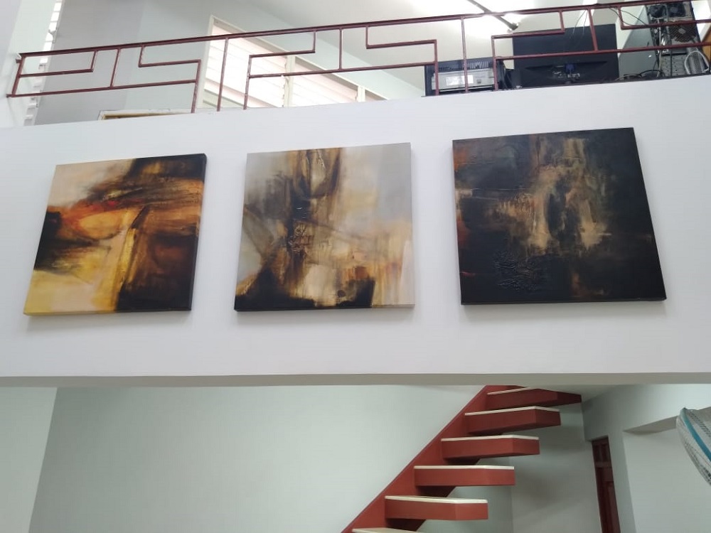 Hábito de ausencias fue concebido como un proyecto itinerante para la región oriental, pero por cuestiones logísticas ha quedado un tanto en pausa. Por tal motivo hoy se aprecia algo de ella en mi estudio. Venía de realizar piezas de gran formato y cromatismo, tanto en De fin a principio, exposición con la que inauguré mi estudio personal en el año 2022, poco antes de Génesis de las manchas en la Biblioteca Nacional de Cuba “José Martí”. Y sí, son 40 obras de 65 x 65 cm con mayor carga de textura táctil y poco cromatismo, algunas con elementos incorporados. Tampoco se pretendía un montaje convencional, sino aprovechar un poco la ausencia de piezas en el espacio a montar; de aquí que cada una tuviera su carga expresiva por sí misma y llegar un tanto a los vacíos. Pues, como buen cubano, cada día cultivamos el hábito marcado de más ausencias.