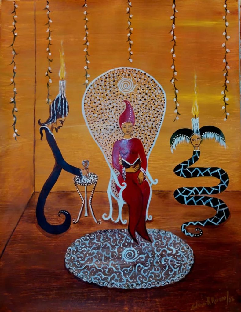 La primera vez que vi a Silvia Rodríguez Rivero fue en un concierto de su esposo, José María Vitier, en la Iglesia Parroquial Mayor de Remedios. Entonces aún no había comenzado a pintar su obra; una peculiar muestra del mundo que rodea el entorno de la familia Vitier-García Marruz. Ella, fascinada por las leyendas locales, recibió un regalo de varios artistas remedianos: pedazos de madera de las ventanas y las puertas que se habían caído fruto del paso del tiempo. Eran apenas restos informes de los que parecía imposible sacar algún tipo de arte. Sin embargo, meses después, en otra edición de conciertos, se organizó en los salones del propio templo la primera exposición, y todos pudieron apreciar el despegue de la artista. Se sabe que en Remedios, desde el siglo XVII, hay una pelea contra los demonios que sirvió de inspiración a Fernando Ortiz para vertebrar una importante obra a propósito. Resulta que, según rezan las actas de varios exorcismos de la época, los diablejos descansan en una de las cuevas cercanas a la villa y amenazan con destruirla y poseer a sus habitantes. En esta imaginería se basó Silvia para concebir sus iluminaciones en madera.