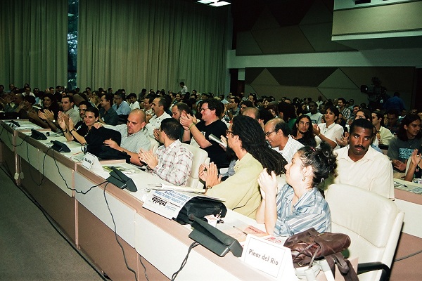 Aquí se ha hablado de identidad nacional y que la televisión y los medios masivos alimentados desde Hollywood constituían el veneno más grande y la amenaza más grande para todos los países, eso es lo que discutimos fundamentalmente en el Congreso de Cultura, y ahora yo he dicho ya que si por aquellos días estábamos aterrorizados e inventando cómo demonios contraatacábamos, hoy estamos a la ofensiva. Ustedes saben que hay 300 Joven Club de computación con personal muy preparado y si queremos podemos crear una página web en cada uno de los 300 centros, ¡imagínense!
