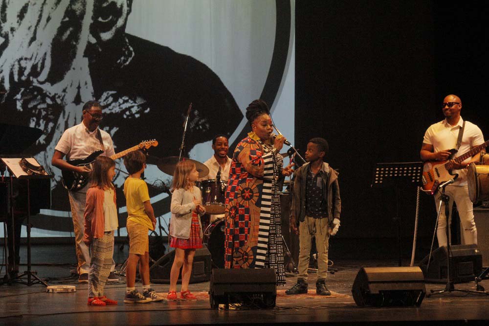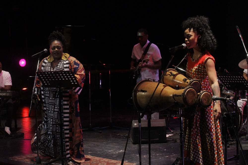 “Music all over the world” fue el tema al que se sumaron los tambores batá. La cantante y percusionista Brenda Navarrete compartió escena con ella, y ante todos mostraron su cariño y empatía. Juntas derrocharon apego a la música afro, a los cantos de corazón, a las deidades, a las sonoridades legendarias de un continente que tanto ha sufrido y que tanto le ha dado al mundo. Volvieron a reunirse al final, cuando de manera improvisada se retaron una a la otra cantando “Kimbala” y evitando que la lengua se enredara.