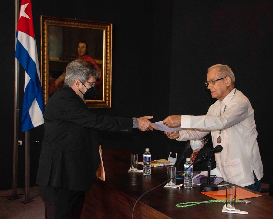Exactamente el 11 de enero pasado, el Doctor en Ciencias Rafael Acosta de Arriba (título adquirido por una segunda tesis de doctorado que defendió en torno a la crítica de arte de Octavio Paz) ingresó en la Academia de Historia de Cuba, donde ocupó el escaño de la letra M (anteriormente a cargo del fallecido Dr. Alejandro García Álvarez). Este acto, realizado en el Aula Magna del Colegio de San Gerónimo, lo consagra y reafirma como un historiador reconocido; calificativo que bien merece, dados sus estudios minuciosos y prolongados sobre la historia patria.