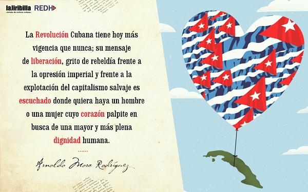 La Revolución cubana tiene hoy más vigencia que nunca; su mensaje de liberación, grito de rebeldía frente a la opresión imperial y frente a la explotación del capitalismo salvaje, es escuchado donde quiera que haya un hombre o una mujer cuyo corazón palpite en busca de una mayor y más plena dignidad humana. Cuba, hoy como en 1959, sigue siendo un faro que ilumina con rayos de esperanza y dignidad a todos los pueblos, incluso a los que viven al interior de regímenes imperiales y viven en carne propia su crisis terminal. Por eso la Revolución cubana está ahora más viva que nunca.