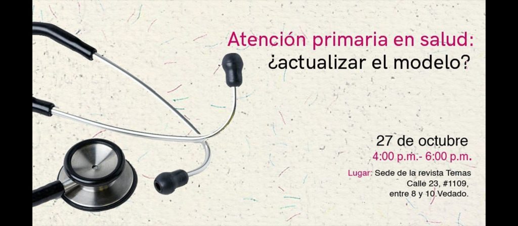 La revista Temas invita al debate del Último Jueves de octubre, dedicado a la Atención primaria de salud en Cuba. En esta ocasión, el panel invitado y el público que habitualmente los acompaña, se trasladarían al Instituto de Ciencias Médicas de La Habana Victoria de Girón, pero a última hora se ha decidido mantener el espacio en la sede habitual de la revista Temas (Calle 23, #1109, entre 8 y 10. El Vedado), en el horario de 4:00 p.m. a 6:00 p.m.