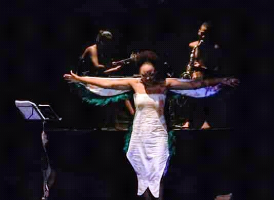 La atmósfera lograda en la obra le debe no poco a la música (original de Sandra Agüero), cuya ejecución en vivo, cuya integración a la puesta alcanza un nivel de sutileza capaz de bordar cada instante, cada emoción. La escena se expande, se mueve, se abre ante nuestros pies y de pronto… ya no estamos en la sala del Cabildo Teatral, ya no es Metec Alegre, ya no es Santiago de Cuba. Es otra dimensión: entramos en las olas, en los acantilados, en el viaje.