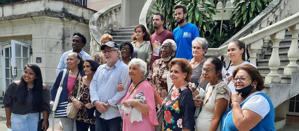 Rubén Breñas junto a otros protagonistas de la telenovela Vuelve a mirar, reunidos con la Cátedra del Adulto Mayor de la Universidad de La Habana.