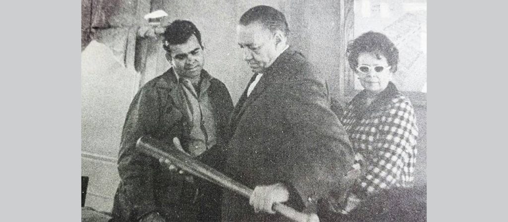 Hay una foto del escritor donde aparece examinando en sus manos un bate de beisbol, acompañado por su esposa Lilia Esteban mientras Jorge García Bango —quien fuera presidente del INDER por varios años—, conversa con ellos. Si la memoria no me traiciona, la imagen data de 1974, cuando por motivo de sus setenta en todo el país se le dedicaron diversos homenajes, incluyendo el que le dedicara el sector de la cultura física. El porqué de la gráfica mencionada, vuelvo a acudir a mi memoria, es el de una visita por esos días a la fábrica de instrumentos deportivos.