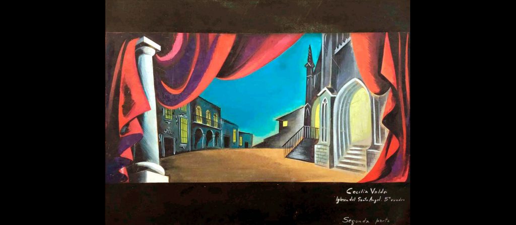 Ejemplo de lo anterior son las piezas —en gouache, acuarela y lápiz sobre cartulina o cartón— que componen la muestra, entre ellas dibujos del diseño de vestuario para las obras Adela (1958), Mulato (1959), El milagro de Anaquillé (1960) y Liborio y la esperanza (1962), y del diseño escenográfico de Cecilia Valdés (1961) y Lisístrata (1963), estrenadas por diferentes colectivos.