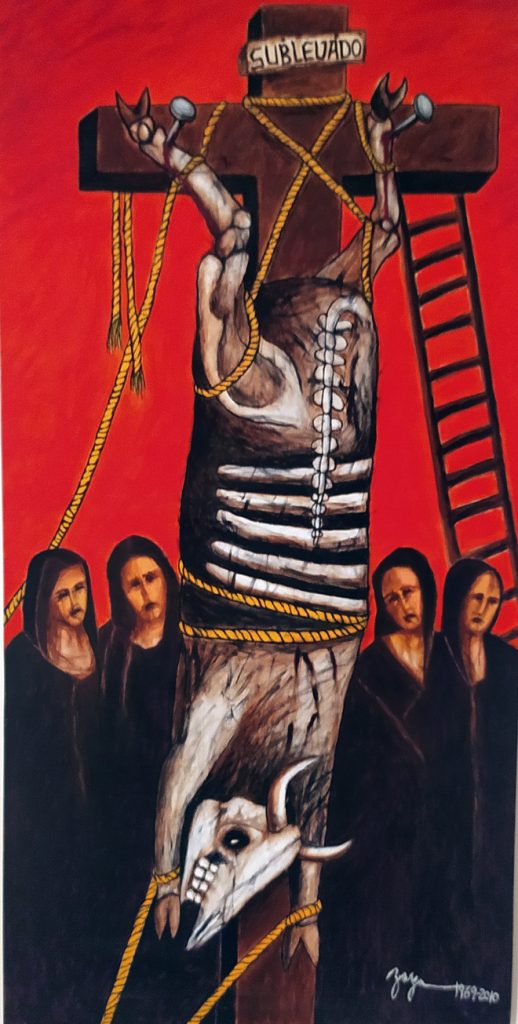 Estos cuadros están inspirados en las ejecuciones que llevaba a cabo la Inquisición: por protestar o por, sencillamente, disentir de la religión imperante, lo cual era una blasfemia para ellos. Se les colgaba el San Benito y se les ejecutaba delante de todos, y la muchedumbre disfrutaba aquello como un gran espectáculo.