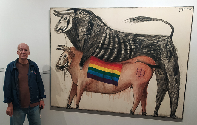 La exposición, que incluye pinturas, dibujos, grabados y máscaras rituales africanas (para un total de 75 obras), constituye una suerte de recorrido por la obra de este creador llano y raigalmente sencillo, cuya personal impronta —tanto pictórica como en grabado— está repleta de una fuerza inusitada, brutal (con tintes sarcásticos y guiños irónicos), y en la que el erotismo es una constante explícita, y para los pacatos, hasta chocante.