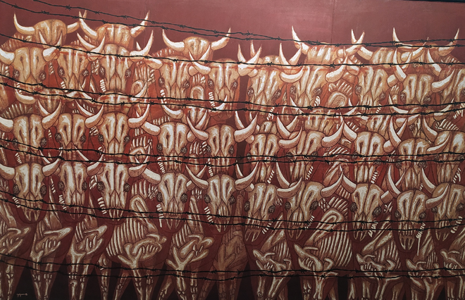 Eso me lo preguntan a menudo. Nosotros tenemos un antecedente cultural que no puede negarse: el hispano. Empleo ese símbolo porque es un icono que me permite moverme a voluntad; pueden ser toros, pueden ser vacas, pueden ser bueyes.