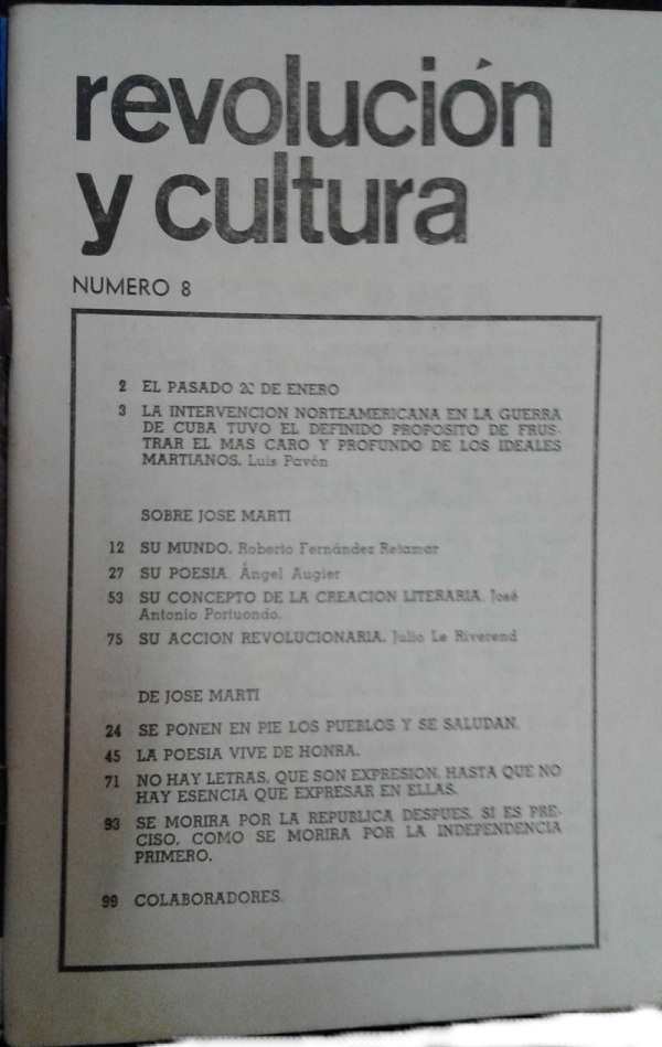 1. Acosta, Leonardo: “Pueblo y Cultura y Revolución y Cultura. Dos números envueltos en el misterio”, Revolución y Cultura, nro. 2, abril-mayo-junio, La Habana, 2006.
