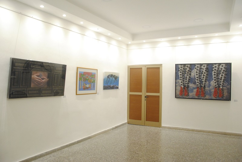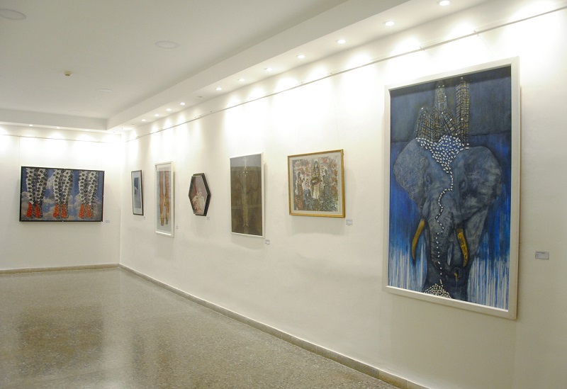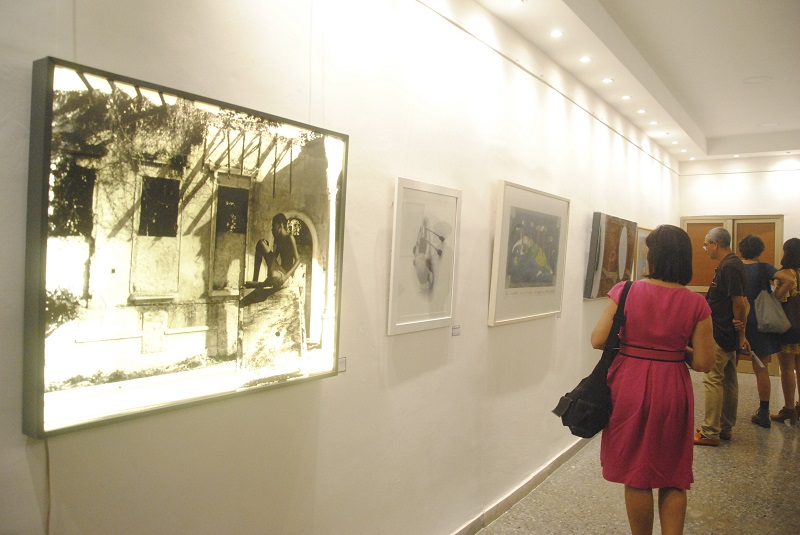 A pesar de su reducido tamaño, la exposición incluye un amplio abanico temático y técnico. En materia pictórica cuentan Flora Fong, con “Temporal”, uno de sus paisajes cargados de Qi, energía vital que circula ininterrumpidamente por todo lo vivo; Alicia Leal, con “Antilla”, una de sus conocidas escenas onírico-surrealizantes, y Jacqueline Brito, autora de “Babel”, pieza que entremezcla pintura y collage. El dibujo está representado por un elogio al café, de Zaida del Río, y el grabado mediante una de las exquisitas colografías de Belkis Ayón que recrean el sacrificio de Sikanekua, según el mito fundacional de la Sociedad Semisecreta Abakuá. A medio camino entre dibujo e instalación encontramos a Lesbia Vent Dumois con “Hexaedro rosa”, obra que incorpora un poema de Rubén Martínez Villena.