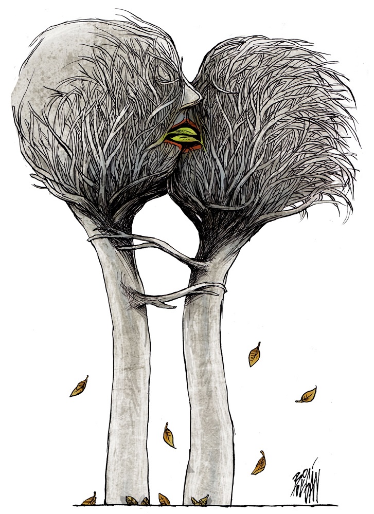 Que ciertos temas sean recurrentes en mi obra, como el amor y la naturaleza, es así desde los inicios de mi carrera, allá por los años 80 del siglo pasado. La obra de ahora ─Con un poco de amor─ consta de 26 piezas realizadas en los últimos tres o cuatro años, muchas de las cuales han sido publicadas en medios internacionales, principalmente en el diario mexicano El Universal, donde colaboro desde 1992.