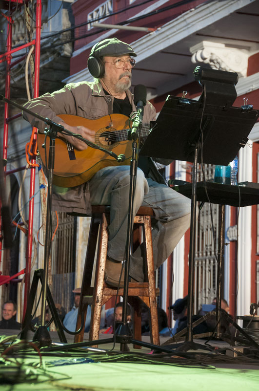 “Balada de Elpidio Valdés”, “Reparador de sueños”, “Días de agua”, “Tonada del albedrío”, “El mayor”, “El necio”, “La era”, fueron algunos de los temas que conformaron esta nueva presentación de Silvio en los barrios, que contó con la participación de los músicos Niurka González en la flauta y el clarinete, Jorge Reyes en el contrabajo, Oliver Valdés en la batería y la percusión, Emilio Vega en el vibráfono y Jorge Aragón Brito en el piano, así como de aquellos “imprescindibles invisibles”, como los llama Silvio, los primeros que llegan, los últimos que se van, que hacen posible estos espectáculos.