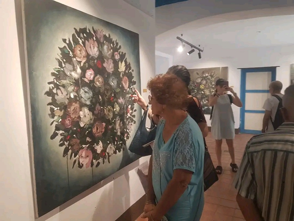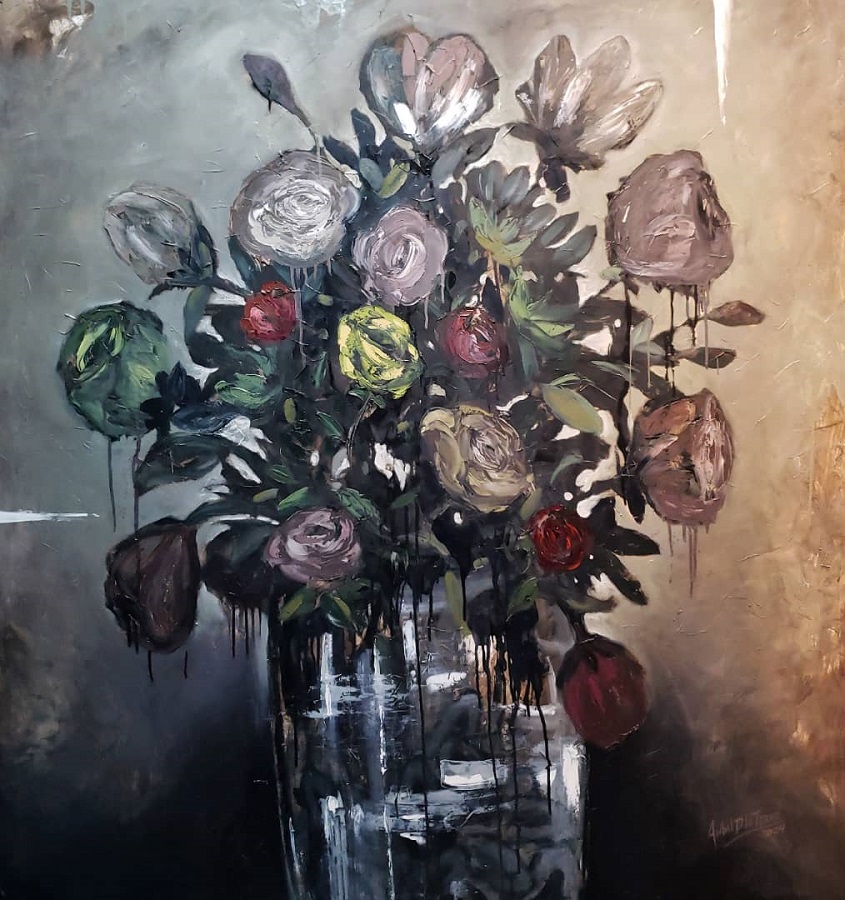 Aníbal De la Torre Cruz ha pintado rosas y camelias, crisantemos y claveles… En su caso, en el principio no fueron las flores, pero sí experimentó su irrupción y las recibió como un llamado, como una dádiva. Las flores de Aníbal son una evolución, un resultado, una consecuencia… Y sobre todo, una coherencia. En un primer momento —recordemos que el artista celebra sus 20 años de carrera— Aníbal partió de varios elementos arquitectónicos de su ciudad, Holguín; luego el rostro humano ocupó el lienzo, como puerta a la interrogación y puente entre quien nos observa desde la obra y quienes, desde este lado del umbral, intentamos comprenderl(n)os. Después enrumbó su mirada hacia la abstracción, desprendiéndose de lo “circunstancial circundante” para internarse en lo “circunstancial metafísico”, en la esencia de ciertas formas y conceptos que han hecho de su obra un tránsito consciente y coherente que permite que, en la naturalidad lógica de su evolución, gane autonomía y refuerce las búsquedas que lo identifican en sus diálogos entre la religión yoruba y el arte, la vida y los caminos de la fe.