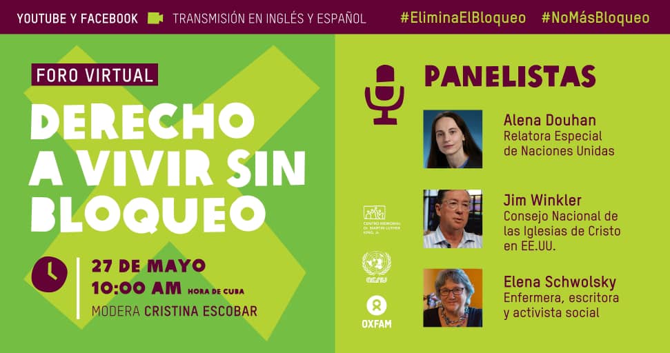 Bajo el título de Derecho a vivir sin bloqueo, el Centro Martin Luther King, la Asociación Cubana de las Naciones Unidas y el Programa de Oxfam en Cuba desarrollarán el próximo jueves 27 de mayo a las 10:00 a.m. un foro virtual a propósito del lanzamiento del nuevo informe de Oxfam sobre los impactos de las sanciones de Estados Unidos en la población cubana y la vida de las mujeres.