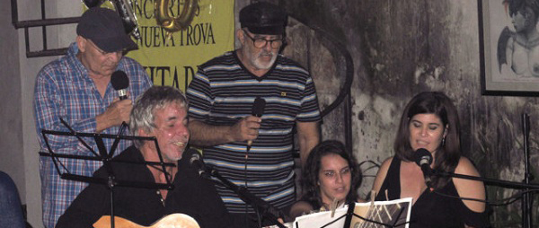 En estos días hemos tenido sobredosis personal de nueva trova (de canción cubana contemporánea, como la llama Joaquín).  Es buena para contrarrestar el mal gusto extendido, por lo general de la programación televisiva y en algunos espacios musicales y otros dizque que humorísticos en esta ciudad: estuvimos en la Fábrica de Trova que organiza el fiel Pepe Ordás en el centro cultural Enguayabera de Alamar; en el Centro Hispanoamericano celebrando ayer los 70 de Vicente y, después, en La vieja casa de la bombilla verde, ese pequeño espacio trovadoresco y del buen gusto en general, para escuchar a ese dúo apasionado y excelente que forman Lien y Rey.