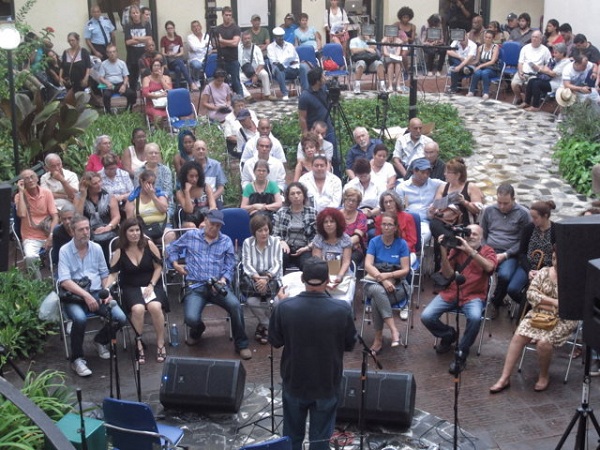 A esos territorios de la imaginación y la tenacidad pertenece A guitarra limpia desde que Santiaguito Feliú se sentó aquí, en este modesto escenario, una tarde de noviembre de 1998 para iniciar ese ciclo que ha incluido, hasta hoy, más de 160 conciertos, casi un centenar de discos producidos, carteles y obras gráficas, audiovisuales y presencia constante en los territorios imprescindibles y complejos de la Red, emisiones radiales en el programa ya más que quinceañero En el Centro, cuadernos y libros: todo lo posible (y a veces lo imposible) para que todas las generaciones y todas las tendencias de la nueva trova construyeran y defendieran con sus canciones este espacio de todas y de todos, cuya existencia tenaz, no exenta de atascos pasajeros o incomprensiones, estamos felizmente celebrando hoy. Al hacerlo, agradecemos a quienes han ofrecido apoyos decisivos: en primer lugar, todas las trovadoras y los trovadores que han pasado por este escenario; y la gente amiga y solidaria como nuestro hermano Silvio o las instituciones como el Ministerio de Cultura y su ministro, nuestro amigo Abel Prieto.