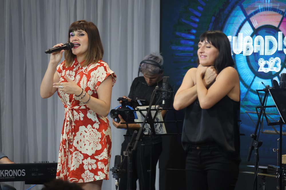 Beatriz Romero también canta. Lo hace con todo el cuerpo. Se presenta como intérprete de lengua de señas, pero es más que eso. Beatriz ofrece los sentimientos, tomándose como puente, para que quienes no pueden escuchar las canciones que canta Rozalén también las sientan y para que quienes sí pueden, se “bañen” de las emociones que comparte.