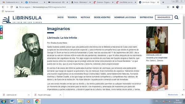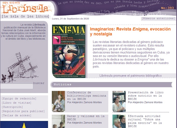 Reza un viejo proverbio popular que lo importante no es llegar primero, sino saber llegar. Luego se añade otra frase que dice que después de llegar, lo importante es mantenerse. La sabiduría popular tiene esa inmensa posibilidad de condensar en unas pocas palabras la esencia de un conocimiento acumulado por siglos, que va de generación en generación. Un conocimiento que es aplicable a casi todo, incluso a la llegada de cuatrocientas entregas editoriales de una revista digital cultural cubana. Tal es caso de la revista digital Librínsula de la Biblioteca Nacional de Cuba José Martí.
