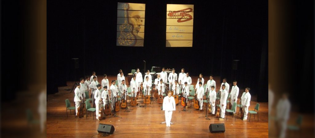 En las primeras etapas centramos nuestro interés en el aprendizaje de ese instrumento tan cubano que es la guitarra. A esta sumamos enseguida las voces y, a partir de ese primer taller que dio paso al coro, nacieron cuatro talleres más. Hoy contamos con diecisiete, entre ellos talleres de solfeo, percusión cubana, técnica vocal y canto, y ya el proyecto incluye otras manifestaciones artísticas como danza, teatro y artes plásticas. De manera significativa destaca un taller de percusión cubana, integrado por niños de círculos infantiles que no pasan los cuatro años de edad.