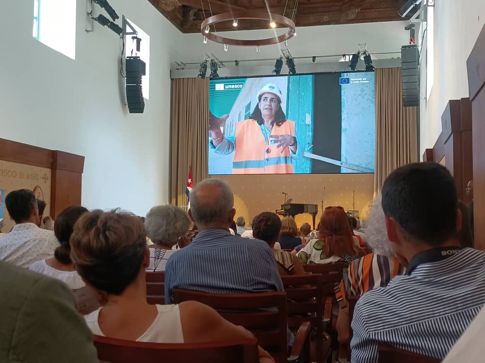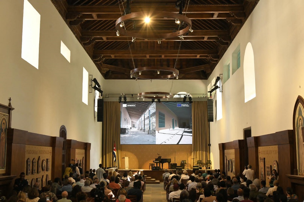 Anne Lemaistre, directora de la Oficina Regional de Cultura para América Latina y el Caribe de la Unesco en La Habana, expresó a los presentes: “En la carpeta de las arquitectas de la Oficina del Historiador, Perla, Norma, Patricia –mencionó– late el sueño de Eusebio Leal por supuesto, plasmado en un esbozo de una visión para Santa Clara, esa visión nos está guiando recordándonos que cada acción de hoy será testimonio en favor de los jóvenes de la región que aquí se formarán en las artes y los oficios de la restauración”. Felicitando además “al maravilloso equipo de la Oficina del Historiador de la Ciudad de la Habana”.