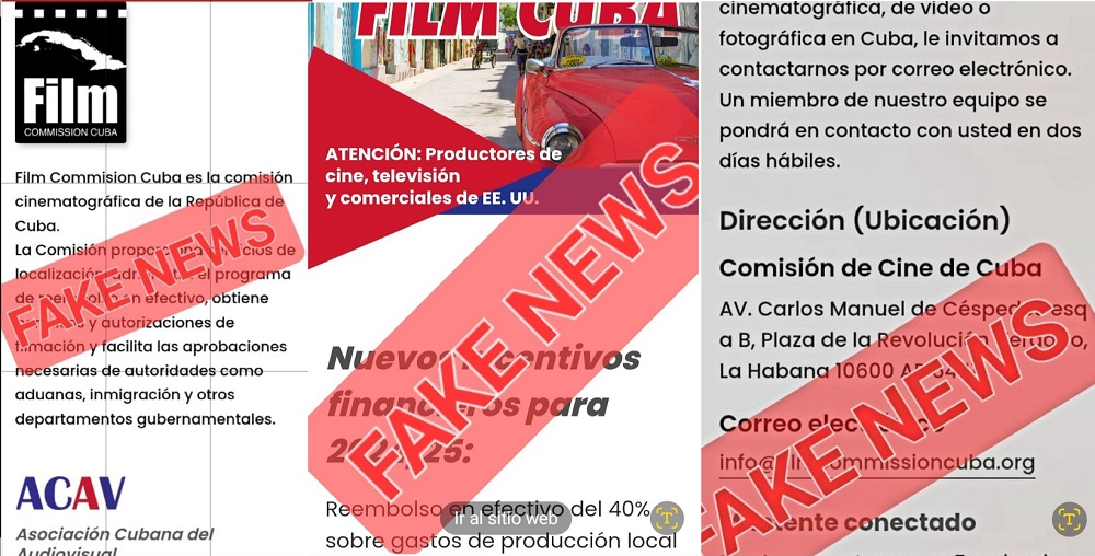 “Con total impunidad opera hasta ahora en esa urbe norteamericana una entidad que se vende como la Cuban Film Commission, y utiliza un falso logotipo de ese organismo, así como de la Asociación Cubana del Audiovisual, para tratar de usurpar el nombre de una comisión que en realidad funciona en Cuba, y engañar así a potenciales clientes”, aseveró.
