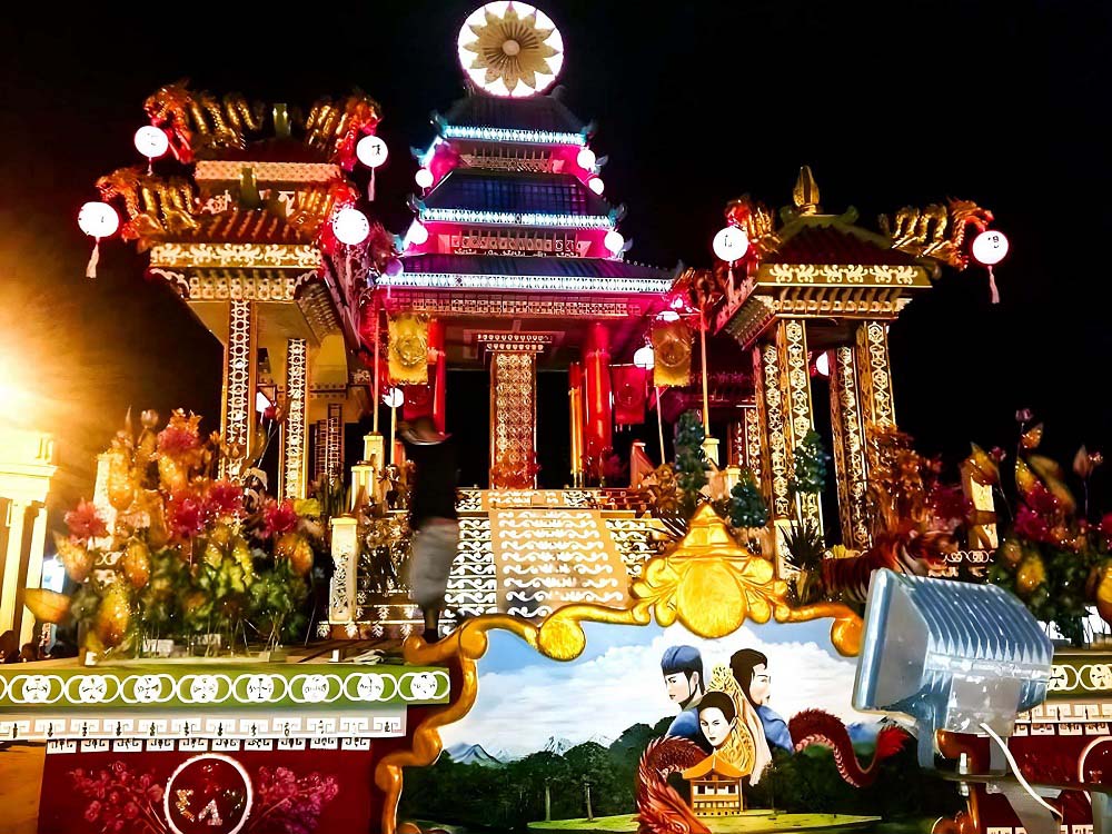 Los elementos de competencia mantenidos desde su aparición hace 100 años son las carrozas, banderas, los fuegos artificiales, estandartes, faroles, así como congas y repiques. Aunque todos estos atributos deciden de igual manera, en la decisión final del triunfo (no cuenta con un jurado especializado, es el pueblo quien decide) es la carroza la que se lleva la mayor admiración de visitantes y foráneos, en la que los artesanos parranderos despliegan imaginación, creatividad y profesionalismo, al ser capaces de reconstruir, recrear y proyectar el tema afín, el cual refiere una obra de la literatura universal, leyenda o narración tradicional. Replican en sus creaciones aspectos de época como sucesos e historias, sobre todo, la auténtica arquitectura, esculturas, modos de transportarse y vestuarios alegóricos. Estos últimos representados por personajes que de forma estática constituyen figurantes, lo cual nos remonta como las máquinas del tiempo a vivir una experiencia única e inigualable.