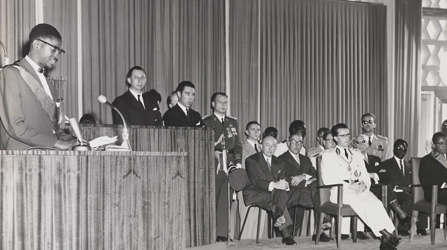 La ceremonia de transferencia efectiva de poderes y toma de posesión tuvo lugar en el Palais de la Nation en Léopoldville (actual Kinshasa) el 30 de junio de 1960. Asistieron dignatarios congoleños y belgas, incluido el rey Balduino, que, tras asistir a misa y comulgar, tomó la palabra para hacer lo que un rey sabe hacer mejor, mentir. “La independencia del Congo constituye la culminación de la obra concebida por el genio del rey Leopoldo II (…). Durante 80 años, Bélgica ha enviado lo mejor de sus hijos a vuestro suelo, para librar a la cuenca del Congo de la odiosa trata de esclavos que diezmaba sus poblaciones (…). Cuando Leopoldo II emprendió la gran obra que hoy encuentra su coronación, no vino a vosotros como conquistador, sino como civilizador”, aseguró en una de las más vergonzosas apologías del colonialismo y el genocidio que el mundo ha conocido. Y coronó su discurso afirmando que “a vosotros, señores, os corresponde demostrar ahora que hicimos bien en confiar en vosotros”. Lo mejor que podemos decir de Balduino es que no lo escribió él.